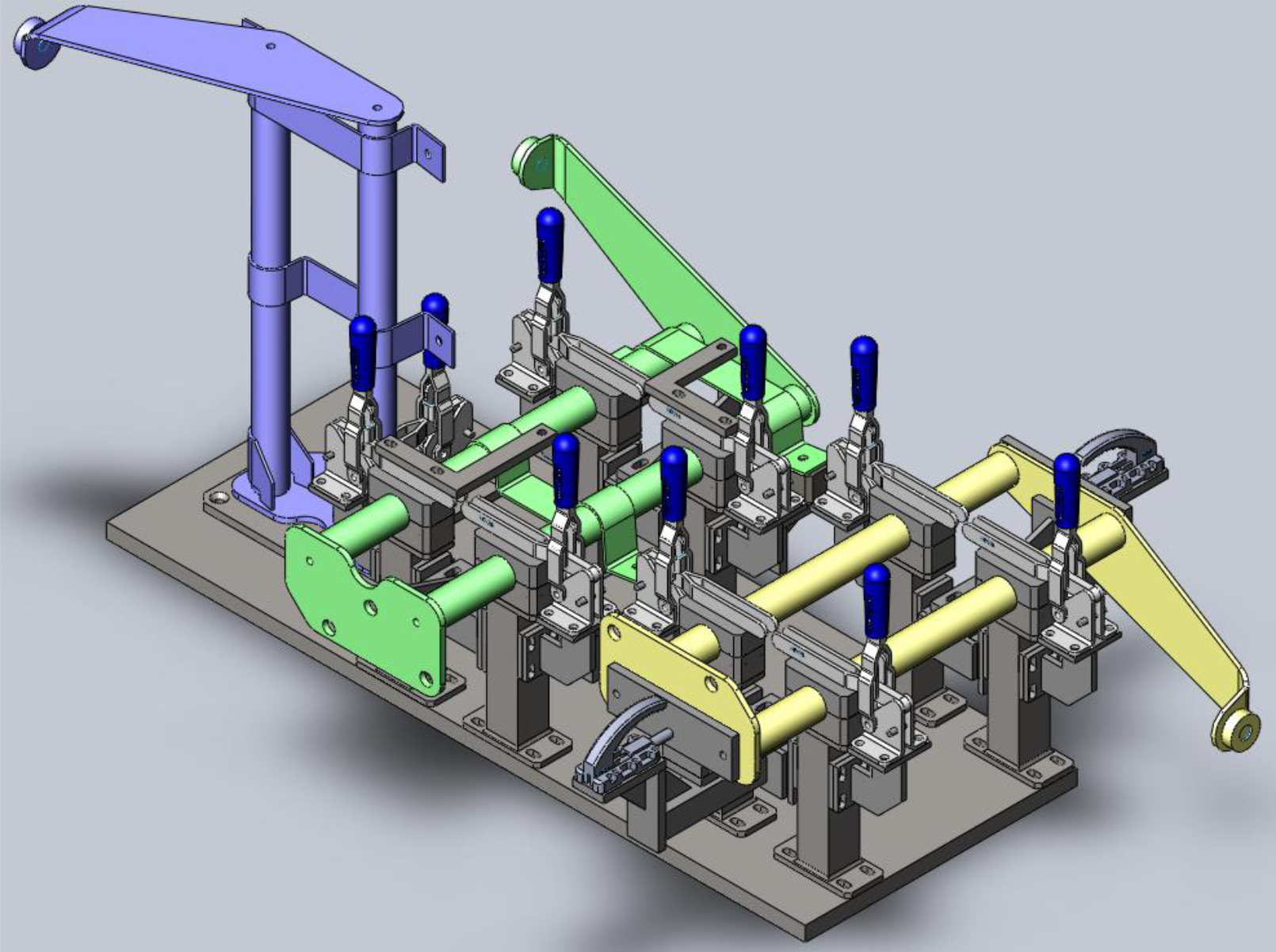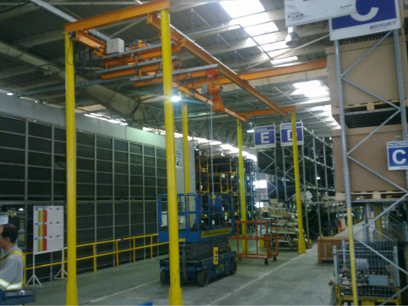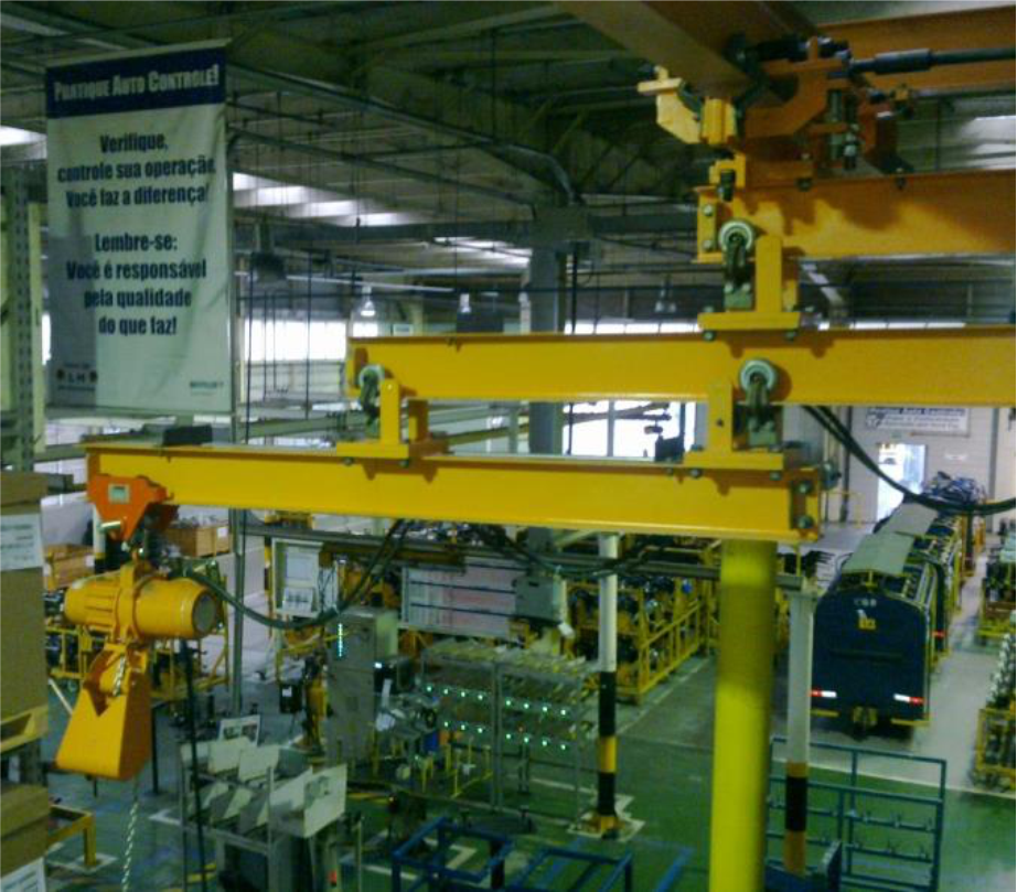Projeto e fabricação de vários dispositivos para manipulação de cargas em linhas de produção e racks móveis na Benteler, em Porto Real – RJ.