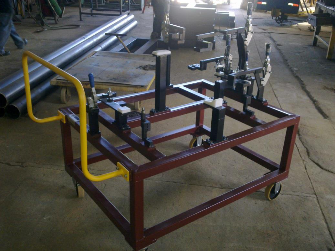 Projeto e fabricação dos racks de transporte dos conjuntos da suspensão e rack para transporte do mais variados tipos de peças das estruturas dos veículos da marca Nissan – Resende – RJ.